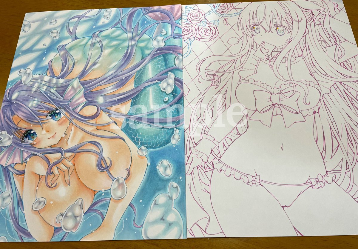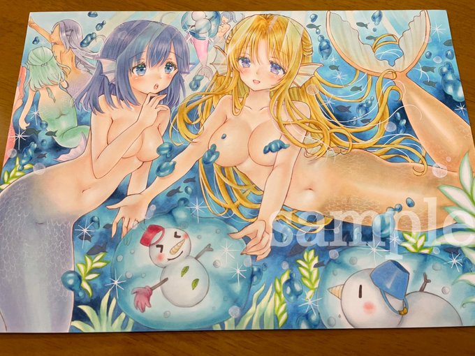16 60 やっと完成したぁ🙌✨ 人魚ちゃんは個人的には裸が1番好みだと思ってる🤔❤️ 右下の雪だるま⛄️くんがおらふくんカラーっぽくなっちゃった🌸 さて、出品してきます🙌🌸 #イラスト #コピック #人魚姫 23/01/27 20:10