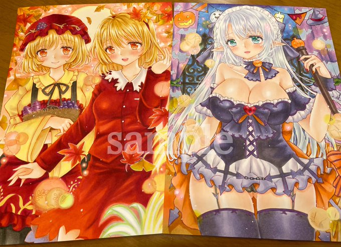 7 35 2枚完成して並べてみた〜 東方projectの秋姉妹とハロウィン🎃イラストのメイドエルフちゃん🙌✨ オリジナル衣装気に入ってる🎃 最近忙しいなー😭💦 体調も風邪気味やし気をつけなきゃ🌸 #イラスト #コピック 22/10/09 20:07