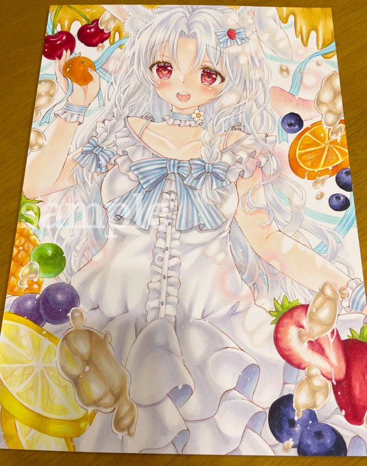 11 54 フルーツティーうさぎちゃん🐰完成🌸 写メだから毎回上手く撮れない😂💦 実物のが綺麗な自信あるわ🥲🥲 とりまヤフオク出品完了🙌 露出ないから自信ないけどお迎えあると嬉しいなぁ😊❤️ #イラスト #コピック 22/11/04 20:08