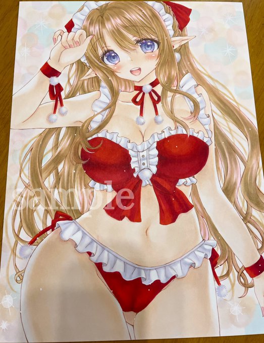 最近は咳喘息でしんでました😭💦 まだまだ治らない🙄 でも絵は描きたい!! 今回はいつもより楽に描いた🌸 メイドサンタさんコスのエルフちゃん🤭❤️ 肌色と瞳塗るの楽しー😌✨ 次もあと塗るだけ!でも時間かかりそう😅笑 #イラスト #コピック