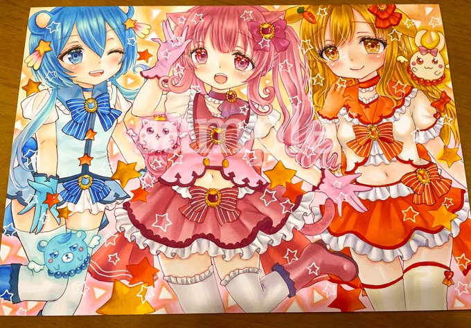 6 56 だいぶ前からずっとちょこちょこ描いてたオリジナル魔法少女ちゃんたち完成🌸 衣装描くの楽しい🤭✨ 仕上げにテンション上がってホワイトの☆描きすぎた😂笑 つぎはクリスマスイラスト完成がんばるぜ〜 ポケモンSVしてるから中々時間ない😌笑 #イラスト #コピック 22/12/08 19:27