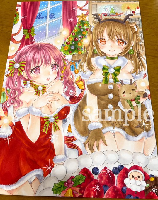 14 53 完成ー(*≧艸≦)❤️ クリスマス2022🎄✨ ケーキ🎂持ってきたよって感じのイラストにした🌸 ゴールドペンも使ったから原画はもっとキラキラしてる🤭✨ 今年の出品はこれでラスト☃️ リクエストに全集中します🙆♀️ #イラスト #コピック #クリスマス 22/12/19 04:06