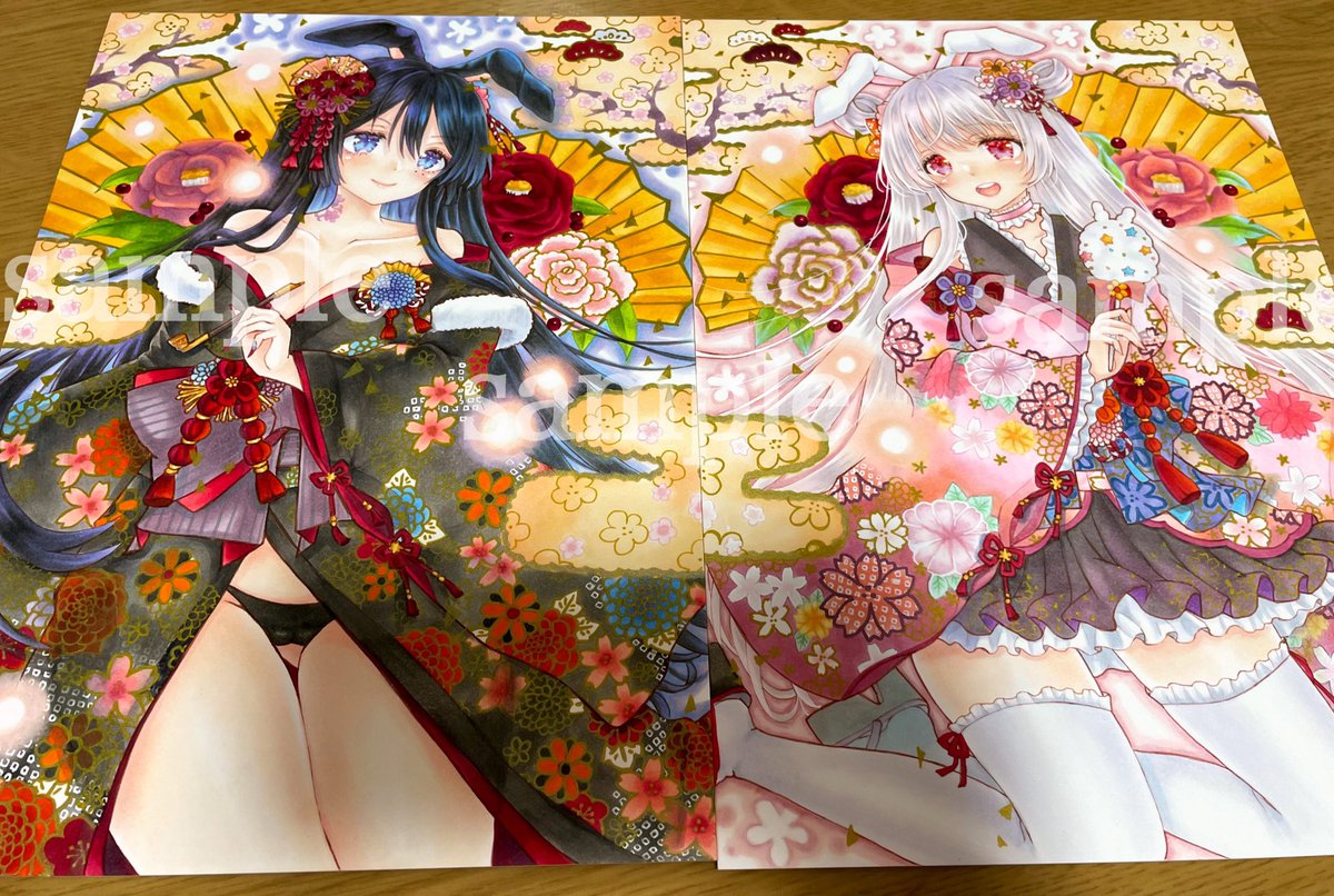 14 42 やっっと!完成した! 黒兎ちゃんと白兎ちゃん🐰✨ 和柄頑張った🙌🌸 半月以上かかってしまった😂💦 ゴールドペンを使いまくって豪華な感じにしてみた🤥 出品やっとできる! 良いご縁がありますように🙌♡ さて、寝よ🫠🫠 #イラスト #コピック #オリジナル 23/01/17 04:41