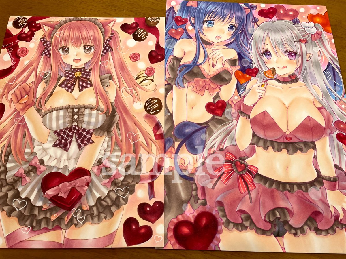 バレンタインイラスト完成!! 二枚目はギリギリさっきおわた😭💦 間に合って良かったー😇😇 いろいろ反省点もあるけど… さて、チョコケーキ作らなければ🙌✨ 旦那が珍しくリクエストしてきたから気合い入れて作るのだっ😋🌸 #イラスト #コピック