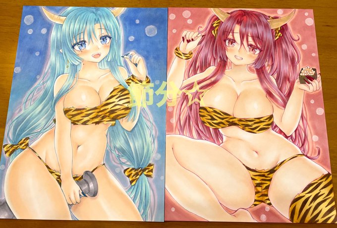 10 57 節分イラストどちらも完成🙌 青鬼ちゃんはバタバタしたから少し荒くなってしまった🙄 ギリギリだな…今回反省点は少し目を盛りすぎた🤣笑 自分自身メイク好きだからついまつ毛を描きすぎたりアイシャドウみたいに色いれすぎて遊びすぎた😇😇 #イラスト #コピック 23/02/03 18:11