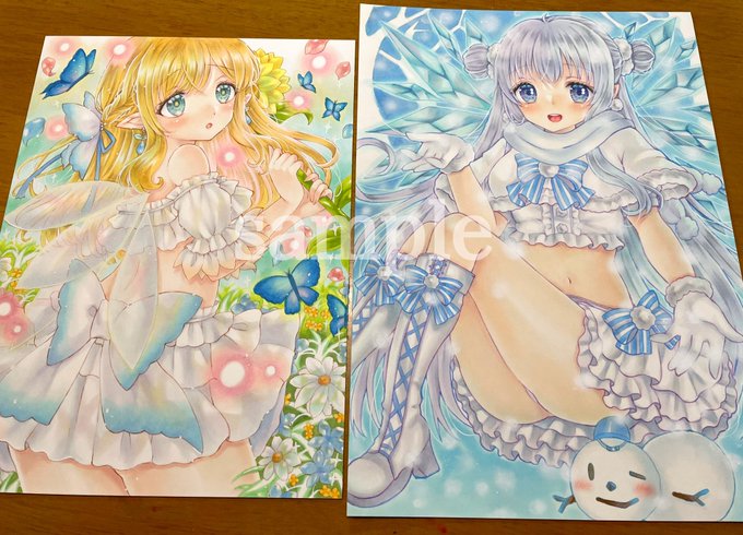 イラスト2枚完成っ🙌✨ 妖精ちゃんと雪ちゃん☃️❄️ 数年ぶりにエアブラシ使った!笑 旦那に買ってもらって数年前に海月姫ちゃんに使ってから封印されてた🙄🙄笑 久しぶりに使わなきゃと思ってようやく使えた!!また使っていけたらいいなぁって感じ😂💦 #イラスト #コピック