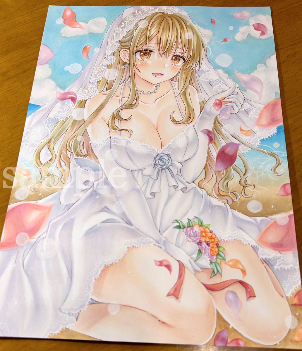 花嫁さん完成👰♀️✨ もうすぐ完成から割と時間かかった😇🌀 空が思ったのと違う感じになったのと下半身もう少し大きくすれば良かった🌀🌀 今回も反省点いっぱいや🥺💦 次はカラフルシリーズか簡単に水着👙の予定🌸 #イラスト #コピック
