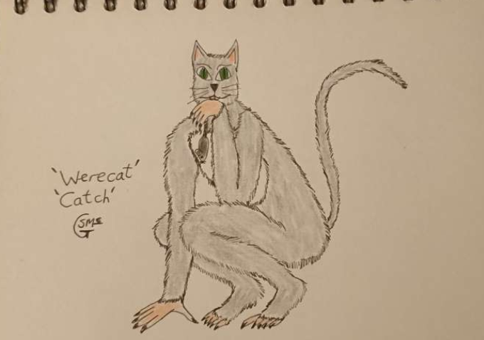 Day 30 of Inktober and Ink-creature-tober, today's prompts were Catch and Werecat. @BorksArtWorks #inkcreaturetober #Inktober #Inktober2019 @mrjakeparker @inktober #catch #werecat
