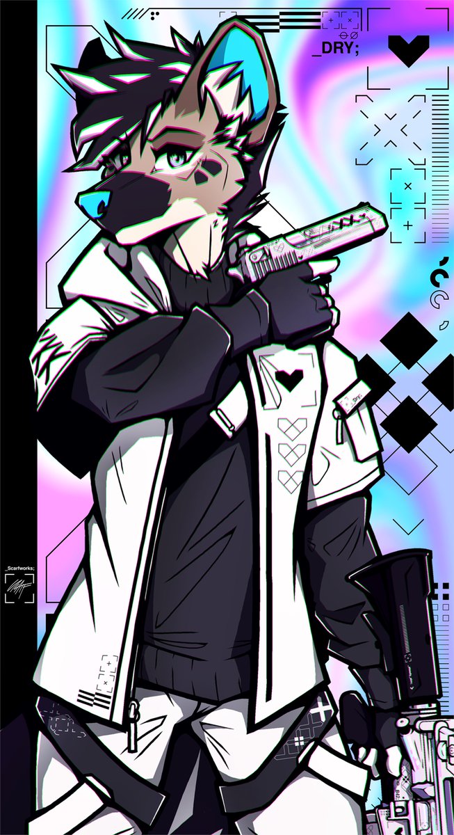 Kill Your Masters Commission for @lth935 of their character Monarch scarfworks.me #furryart #cyberpunk