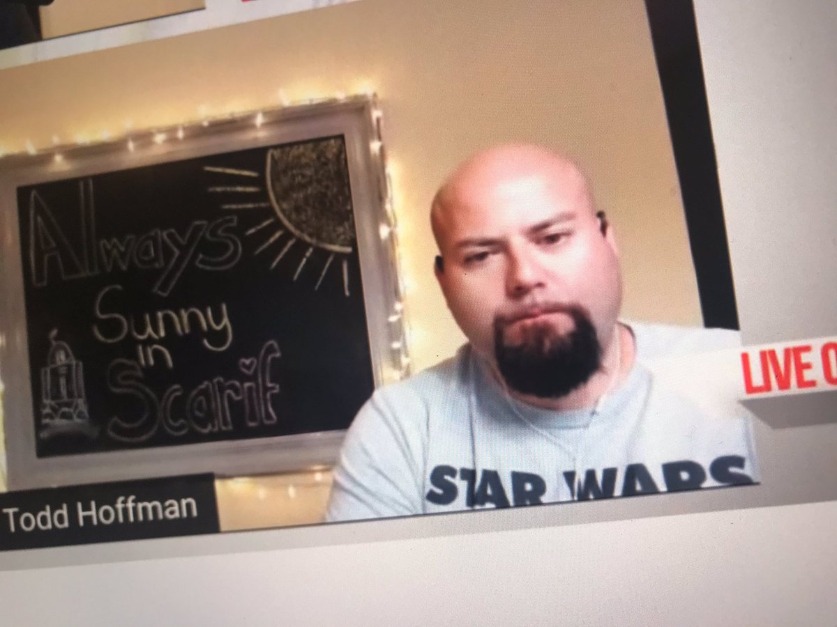 #Cosplay episode! What’s @tizzzzod thinking here? Wrong andwers only! 🤣😂 #Red5Family #ScarifLive #AlwaysSunnyOnScarif