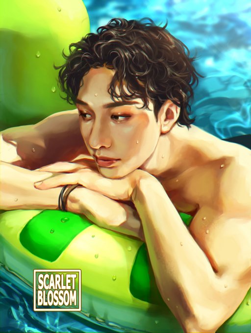 -Pool- . Chan and his Chandora floatie ! . @Stray_Kids #StrayKids #Straykidsfanart #Bangchan