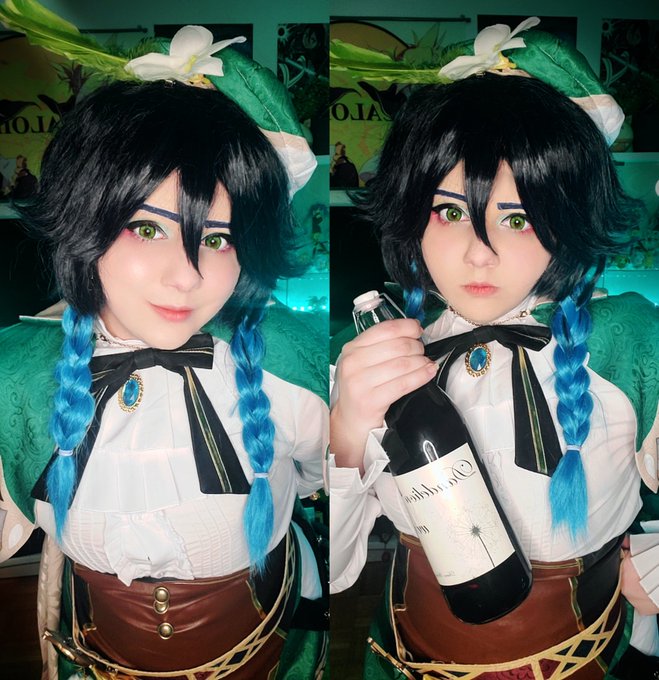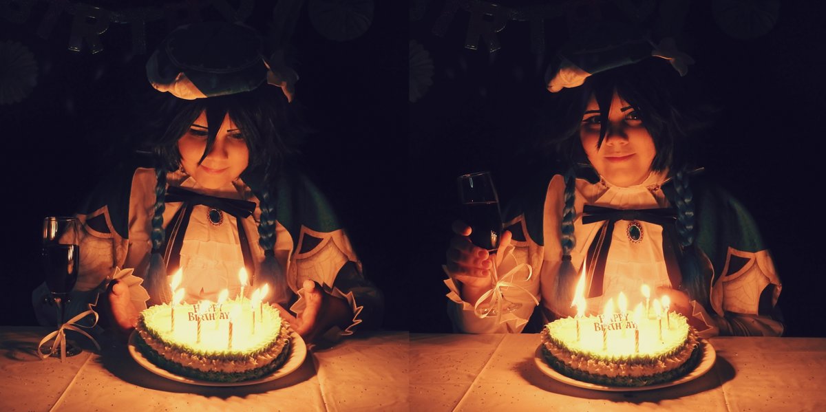 Happy Birthday Venti! 💕🎉🎊 I did a small at home photoshoot for the occasion! Also baked the cake myself, was not an easy task 😅 #Venti #GenshinImpact #Cosplay