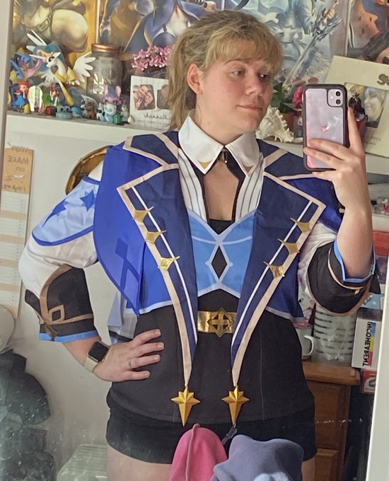 Come home from work to find Kaeya surprised me by arriving!! 😱😱 I cant get over how good it fits! (Trousers not so much but thats fine! I had a backup plan incase) Now for the tweaks to commence! #genshinimpactcosplay #genshinimpact #cosplay
