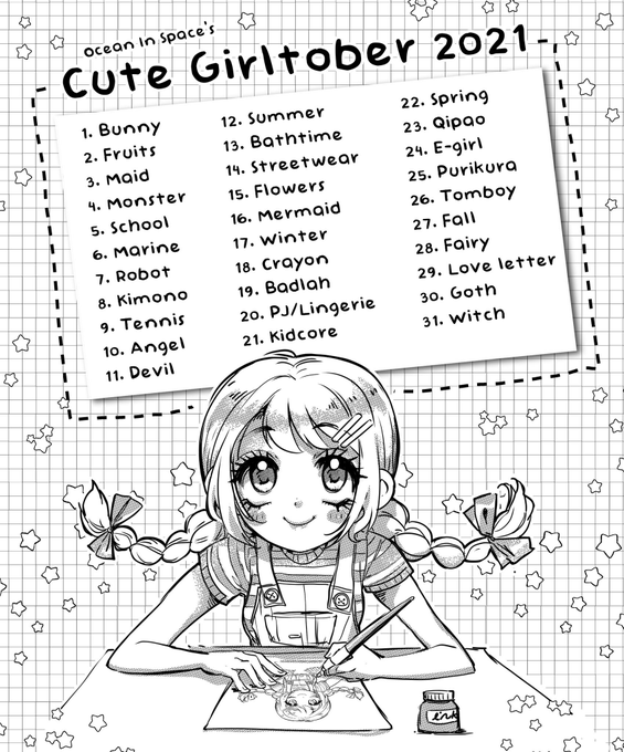 #Cutegirltober2021 One of my favorite animals, I really liked doing it, it is quite simple with a base color but I still liked it a lot. ✨✨ Day 1. Bunny 🐰 [ #Inktober #myart #cute #animegirl ]