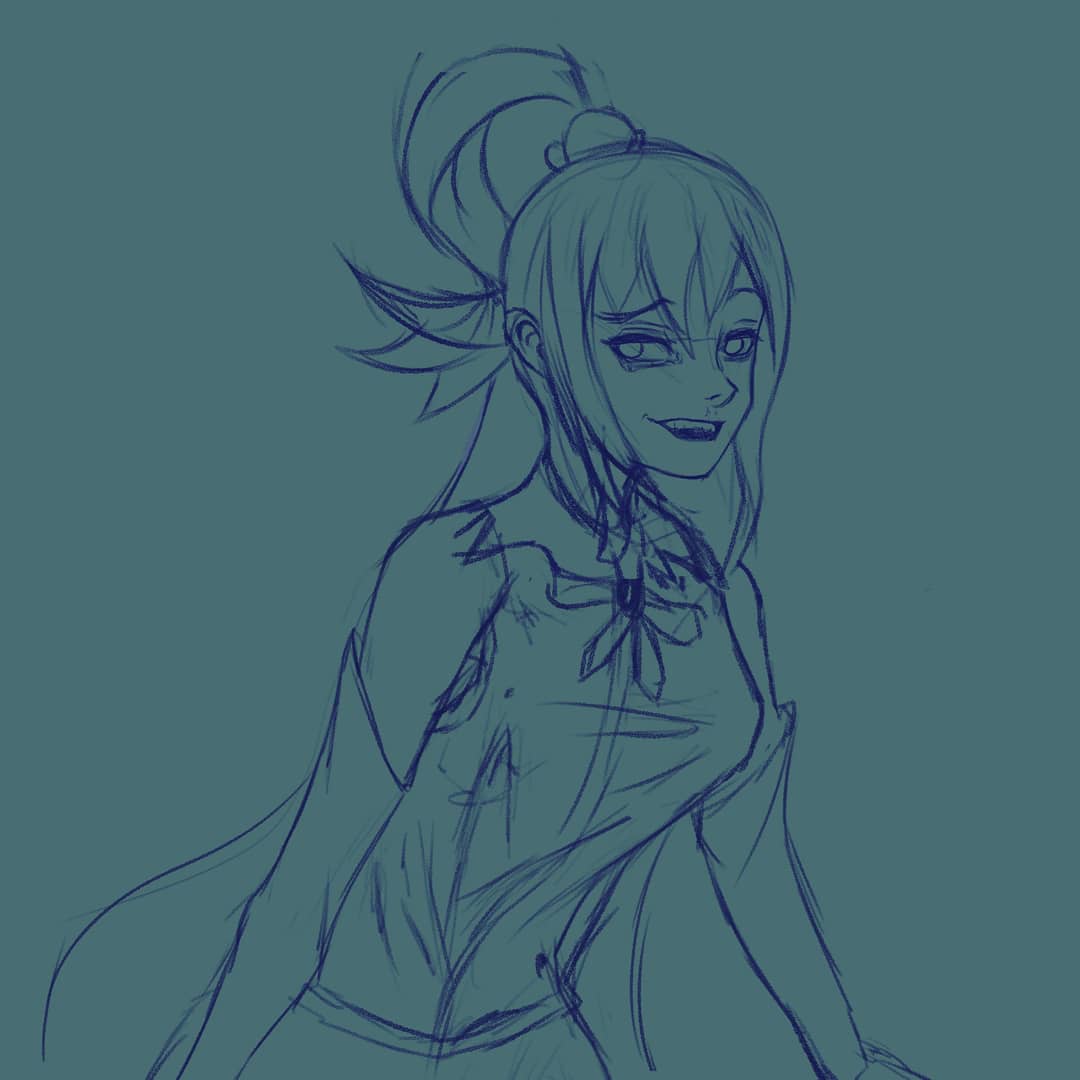 💫Day 12 Aqua, just a random sketch, need more practice ___ __ _ __ ___ #inktober #fanart #aquakonosuba #inktober2020 #sketch #sketching #digitalgirl #digitaldrawing #practice #30daysdrawingchallenge #konosubafanart