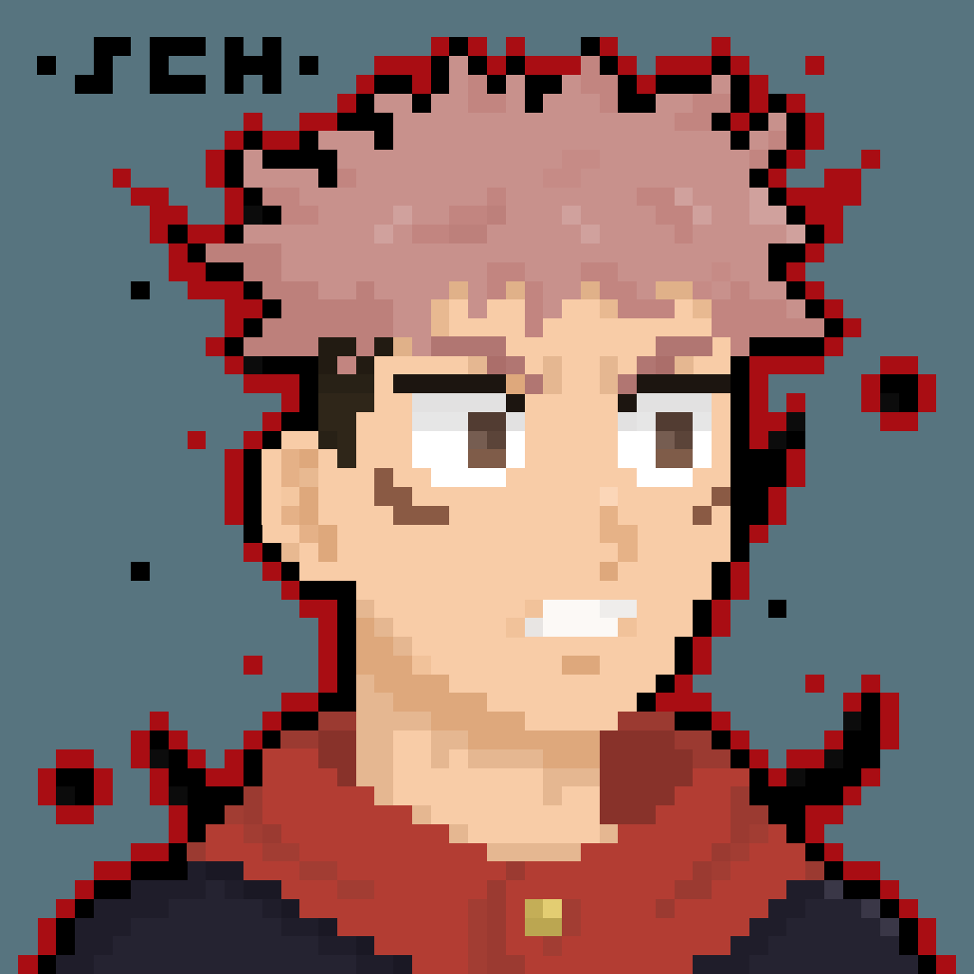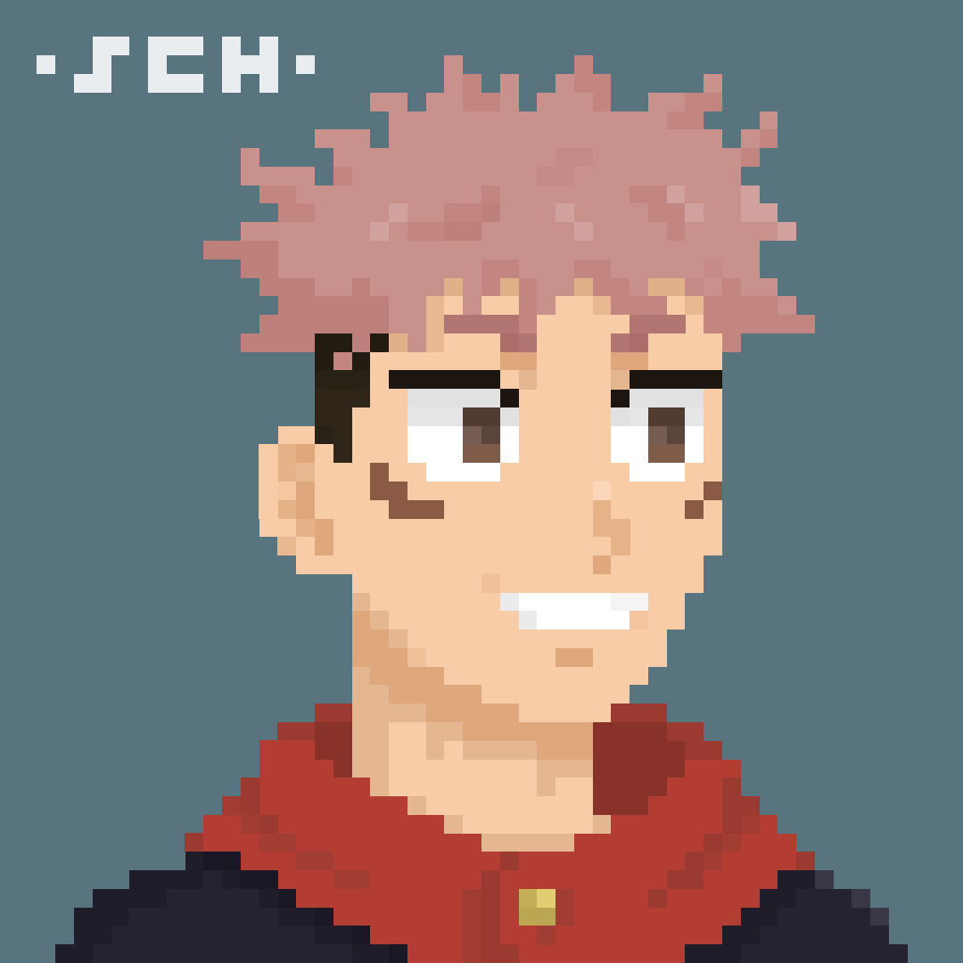 JJK is my best discovery of the year so I wanted to draw Itadori Yuji #JujustuKaisen #jjkfanart #Itadoriyuuji #pixelart #ドット絵