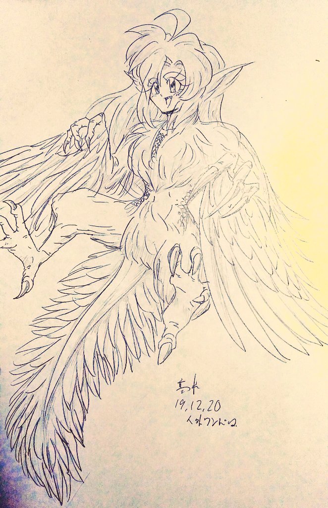 5 19 Harpuia,古代ぽいharpy #人外版深夜の真剣お絵描き60分一本勝負 19/12/21 00:03