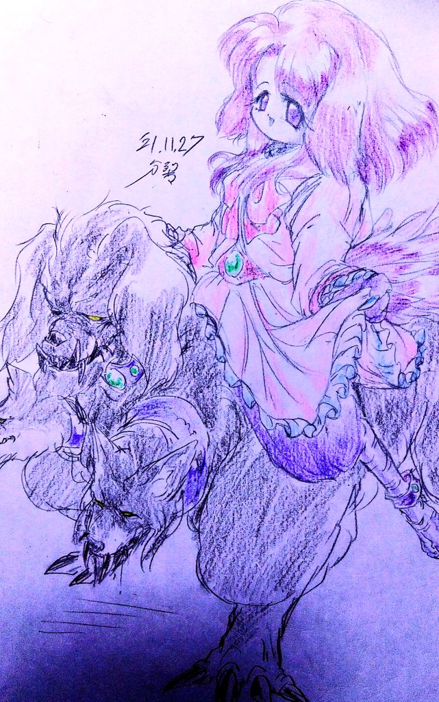 2 13 ケルベロス風 #人外版深夜の真剣お絵描き60分一本勝負 21/11/27 00:23