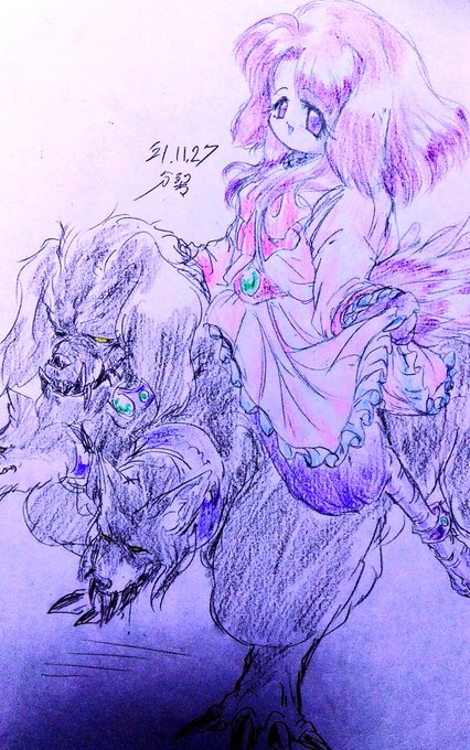 2 16 #人外版深夜の真剣お絵描き60分一本勝負 姉妹、、、めっちゃ掛かってしもた 19/12/07 00:55
