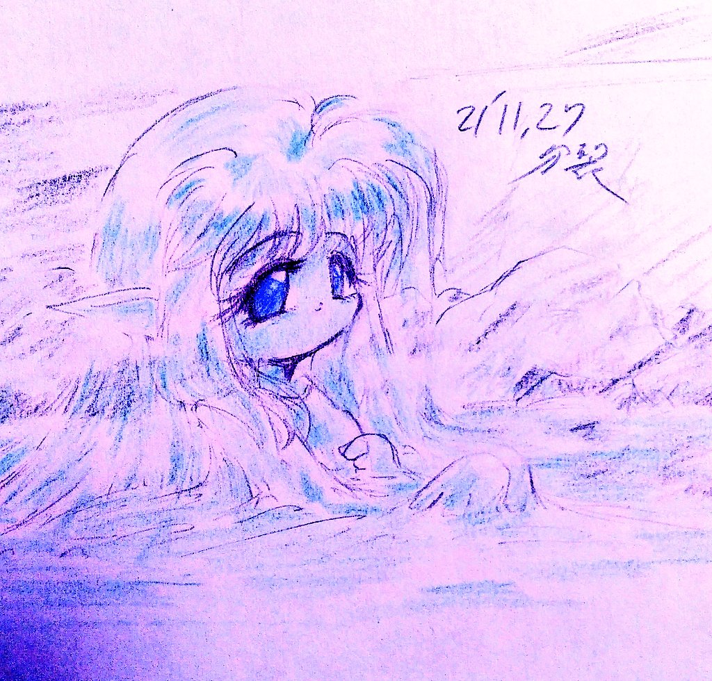 6 23 温泉ぽく... #スライム娘版深夜の真剣お絵描き60分一本勝負 21/11/27 23:20