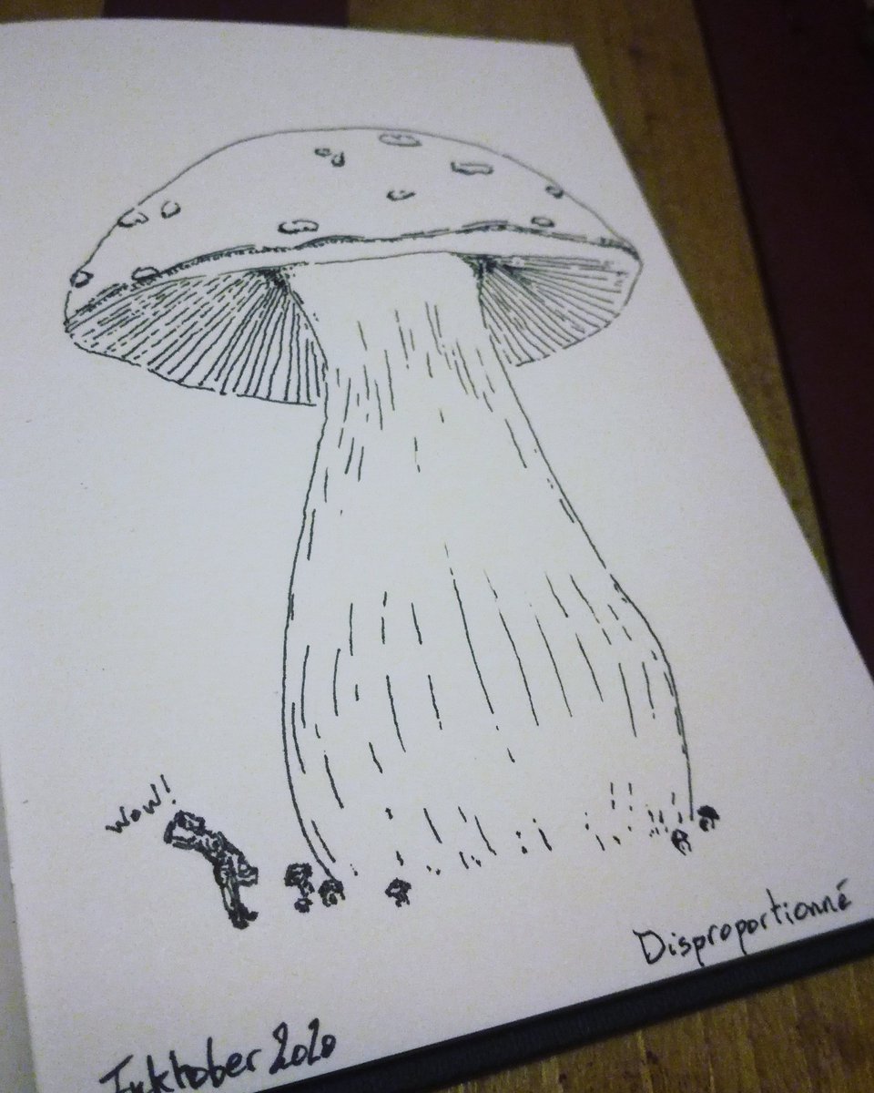 Jour 23: Disproportionné.e 🍄 #adrinktober2020 #inktober2020 #plant #drawingoftheday #pendrawing #quickdrawing #mushrooms #proportion #huge