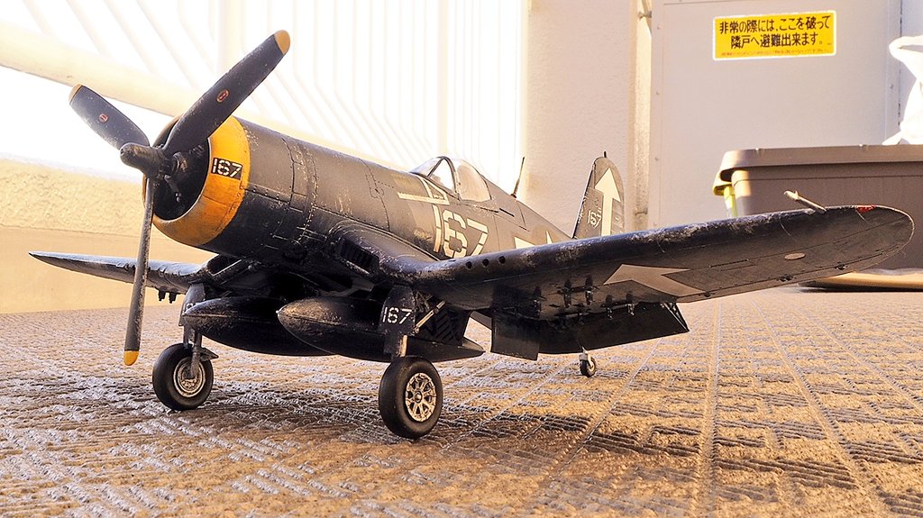 13 59 タミヤ 1/48 ヴォート F4U-1Dコルセア完成しますた! 撮影ブースに収まらないのでベランダ撮影🙄 塗装はアクリル筆塗りです。 #今月作ったプラモ晒そうぜ #タミヤ 23/01/20 17:47