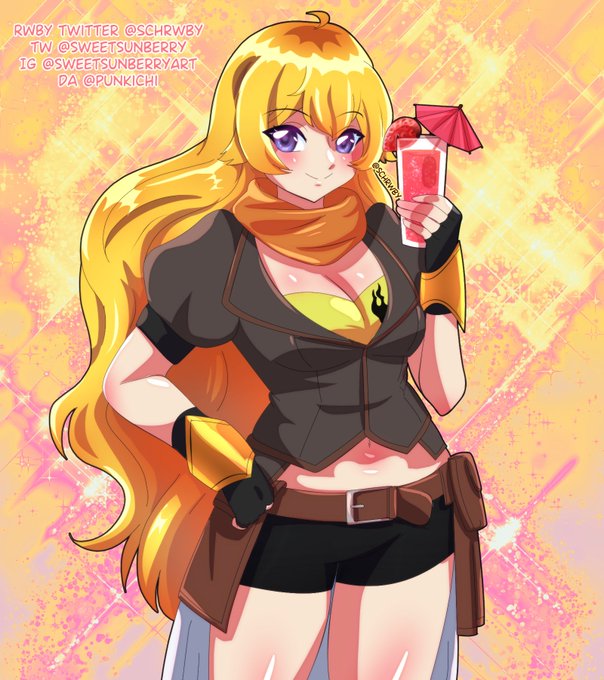🍓🍹Yang with Strawberry Sunrise!🍹🍓 With one of those little umbrellas! I hope you enjoyed my food series with team RWBY! It was so fun! You can follow for more #RWBYfanart from me~ #RWBY #yangxiaolong #animeartist