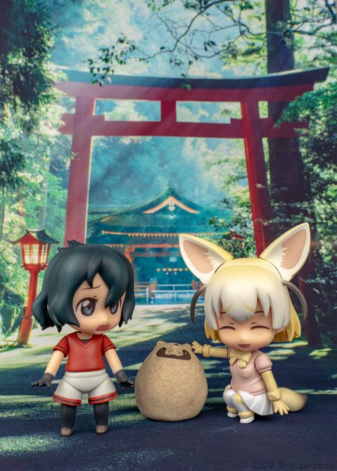 9/12【へんか】 怪しい置物がこっちを見てる。た、たべないでくださ~い! かばんさん。この子はタヌキだよ。恥ずかしがり屋さんだから置物に化けてるんだって。普段の姿はアライさんにそっくりなんだよ。 タタタ……タヌキです。よ、よろしくおねがいします。 #深夜のねんどろ撮影60分一本勝負