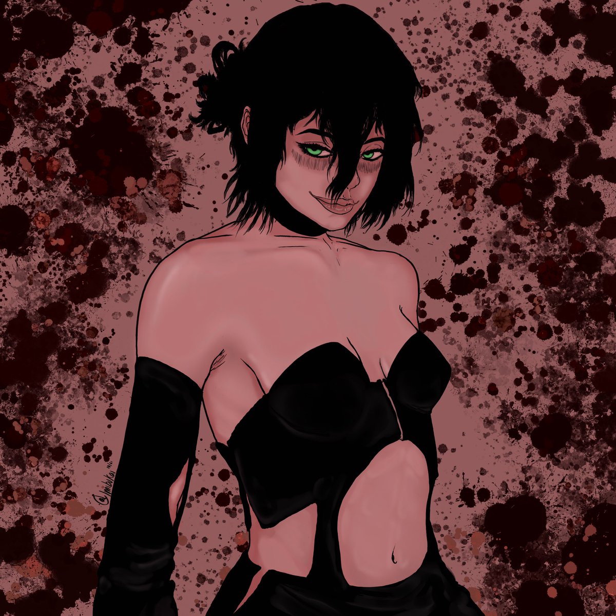 Suzu in “Litter Box of Balloons🎈 “ *zoom for details* #lineart #digitalart #Perspective #rkgk #characterdesign #horror #HorrorArt #art #illustration