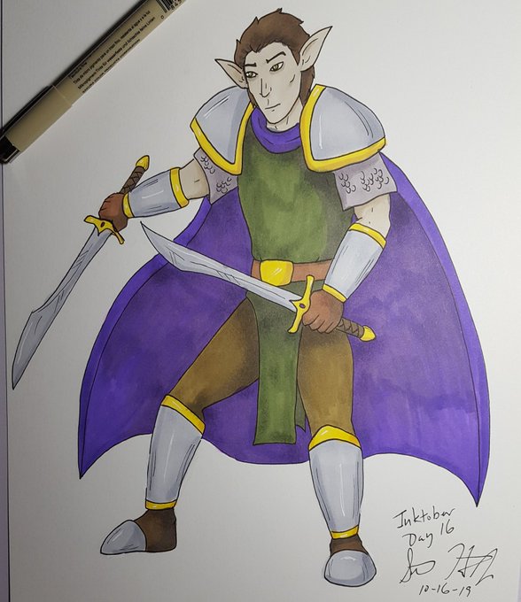 #Inktober Day 16. Sir Malsvyr, the noble elven knight. I like how this one turned out. #inktoberday16 #inktober2019 #dnd #DnDcharacter #dndart #dungeonsanddragons #elf #knight