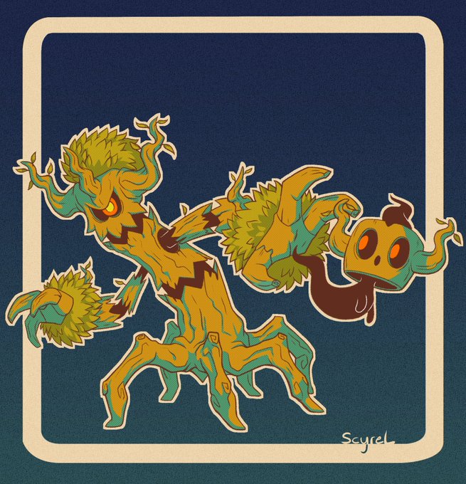 Starting off with some haunted woods #pokemon, Trevenant and Phantump using a little vintage color palette. #Halloweenart #drawtober2021