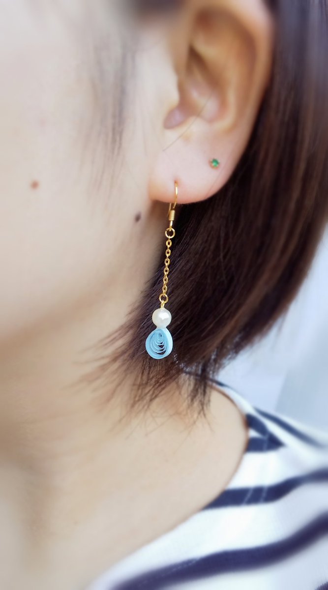 0 7 試作中の紙とパールのイヤリング、、、 涙形のパーツが可愛いと思ってから それから抜け出せない、、、 #ペーパークラフト #ペーパークイリング 20/04/19 11:26