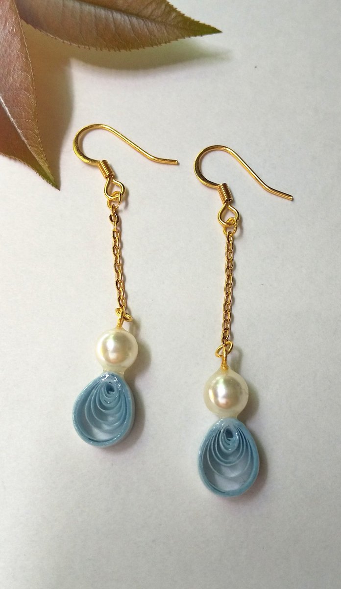 試作中の紙とパールのイヤリング、、、 涙形のパーツが可愛いと思ってから それから抜け出せない、、、 #ペーパークラフト #ペーパークイリング