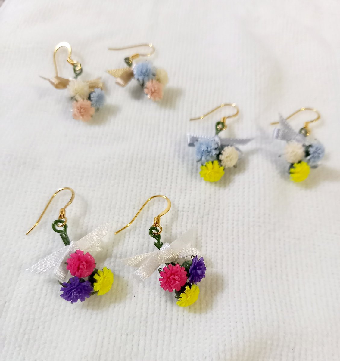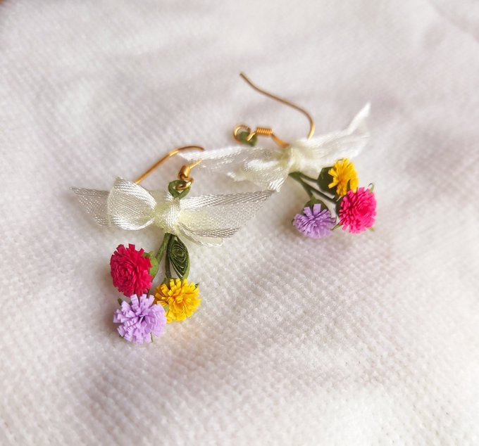 1 12 花束のイヤリングも作りました!!💐 #ハンドメイド #イヤリング #ペーパークラフト 21/03/27 08:27