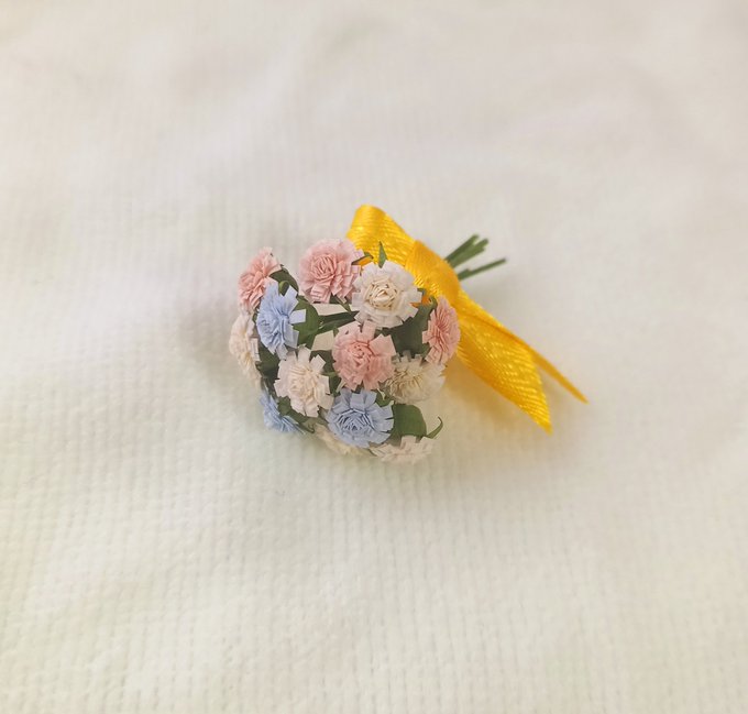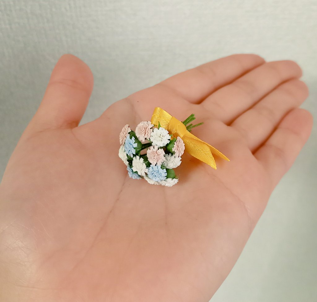 1 14 昨日から夢中で作業してて、どんどん楽しくなって止まらなくて、今やっとできた😊とっても可愛く花束のピアスができたと思う✨ #ハンドメイド #ペーパークラフト 21/03/27 02:48