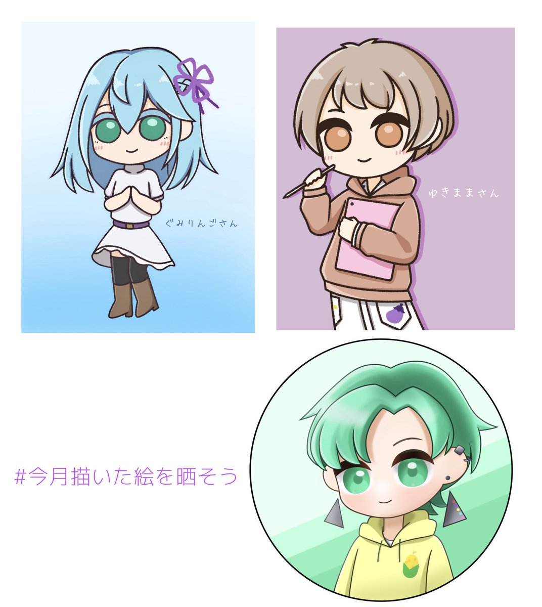 #今月描いた絵を晒そう 今月は自分にしてはたくさん描きました🖌 お祭りもいろんな絵師さんのイラストが見られて最高に楽しかった🥰 デジタル絵に早く慣れたい……