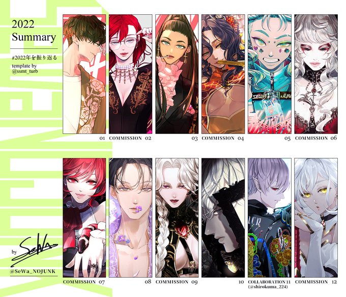1 2 #2022年の絵を振り返る 塗りを勉強したから上半期と下半期で違う人の絵のようだ 22/12/23 01:58