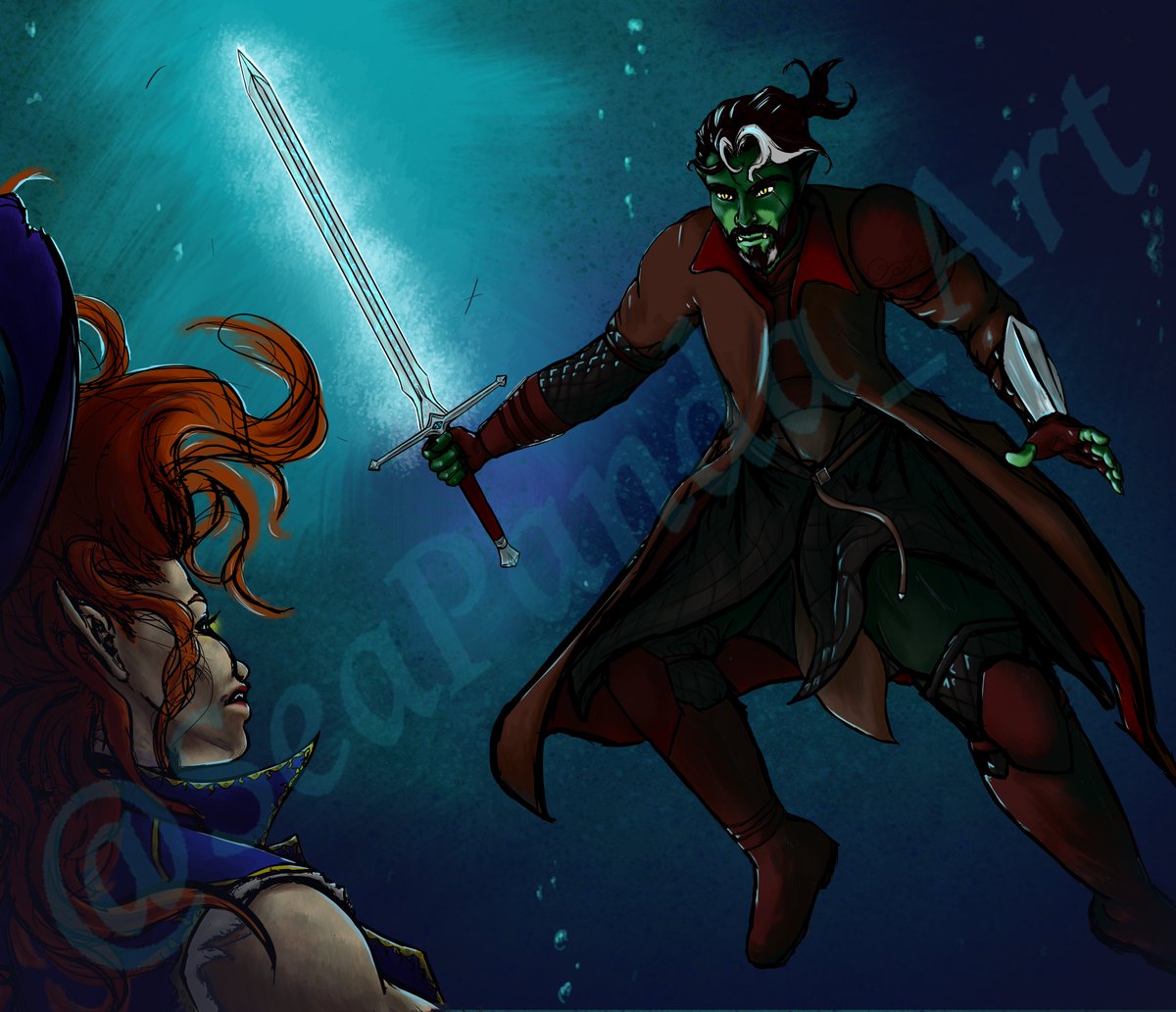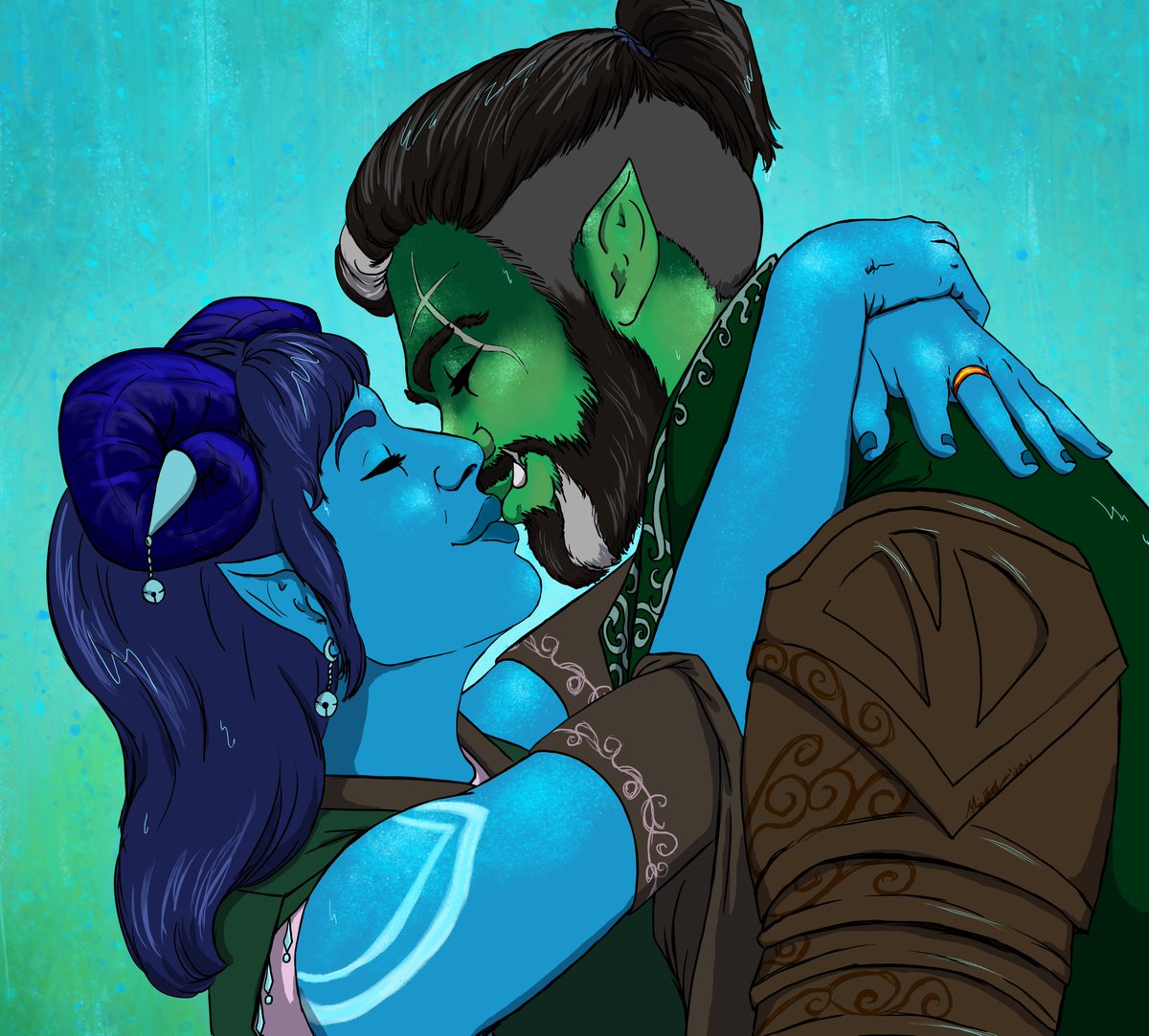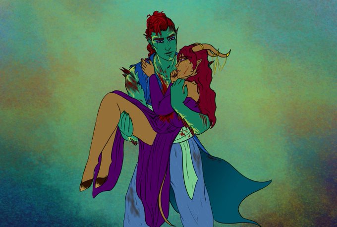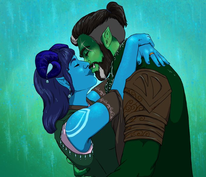 re-pst: Art from my DnD adventures, the rogue and sorcerer pair that the whole party ships after a big boss battle. #dndart #DnDcharacter #dnd #digitalart #ArtistOnTwitter