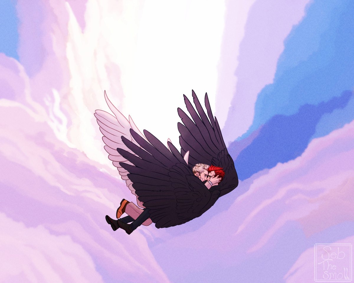 A full view for those who want a phone background or something #GoodOmens #GoodOmensFanArt #ineffablehusbands #aziracrow #Crowley #Aziraphale