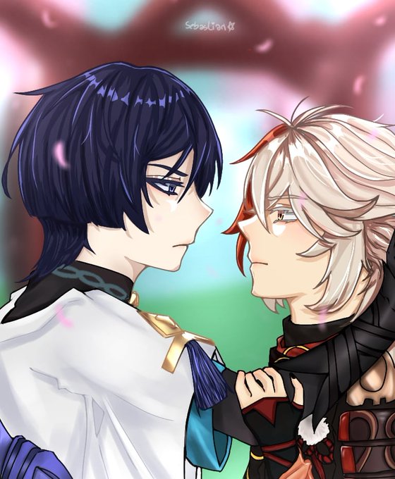 "You speak of the descendant of the Kaedehara clan?" We know you're a big softie Scara. #GenshinImapct #Genshin #scaramouche #Kazuha #kazuscara #scarakazu #fanart #genshinimpactfanart #scaramouchefanart #kazuhafanart #KaedeharaKazuha #ArtistOnTwitter #gaming #AnimeArt #animeboys