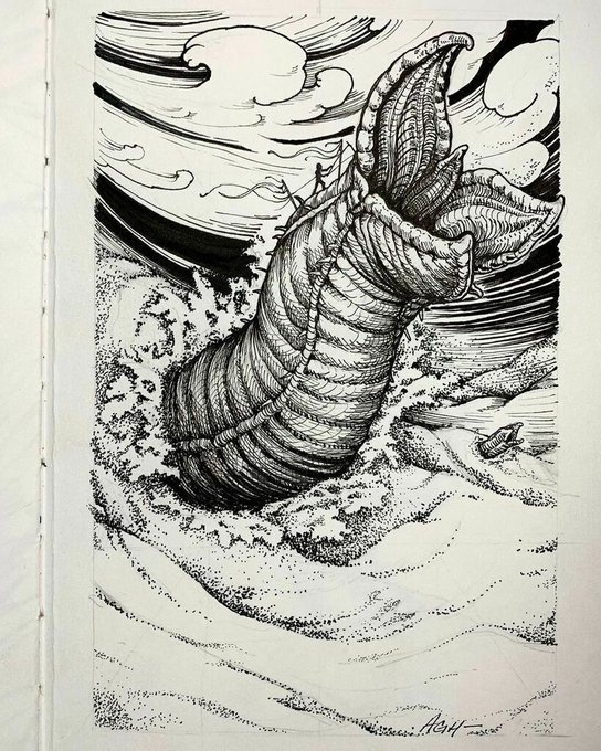 “Shai-Hulud (Dune)” by Jason Brown @JB_AfterHours #inktober2019 #inktober childrenofdune.tumblr.com/post/188679120… #Dune
