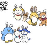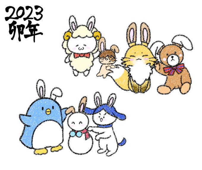7 108 少し遅いですが あけましておめでとうございます! 高田村動物マスコットたちうさぎver. #たけぉぇかき #見るかもわからん #ふじみやまで届け #羊飼いK #いずにこあーと #はたアート #あるまぁーと 23/01/09 23:15