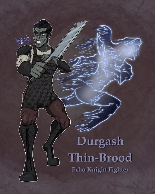 A unique take on an Echo Knight to be sure. #dnd #dndart #echoknight #halforc #trrpg #dungeonsanddragons #dungeonsanddragonsart #fighter #d20