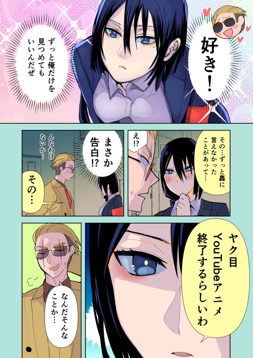 ヤクザと目つきの悪い女刑事の話YouTubeアニメ 3周年&チャンネル登録者数50万人突破記念のお祝いイラストを描きました! 今後ともヤク目をよろしくお願いいたします! #ヤク目 #YouTubeアニメ #ヤク目みかじ絵