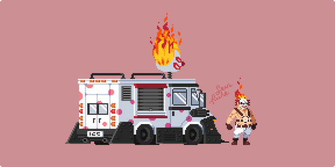 A perfectly normal #IceCreamVan operated by an average #IceCreamMan, I hope you guys at @Pixel_Dailies enjoy, hopefuly someone remembers this jewel! Trying a style without outlines for the first time! #TwistedMetal #pixel_dailies #pixelart #pixel #aseprite #ドット絵