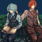 #ポケモントレーナー版深夜の真剣お絵描き60分一本勝負 「幼馴染」ということでサトシとシゲル モンスターボールの陰影の付け方間違えた気がするので明日グリザイユやる時に修正します……不覚………