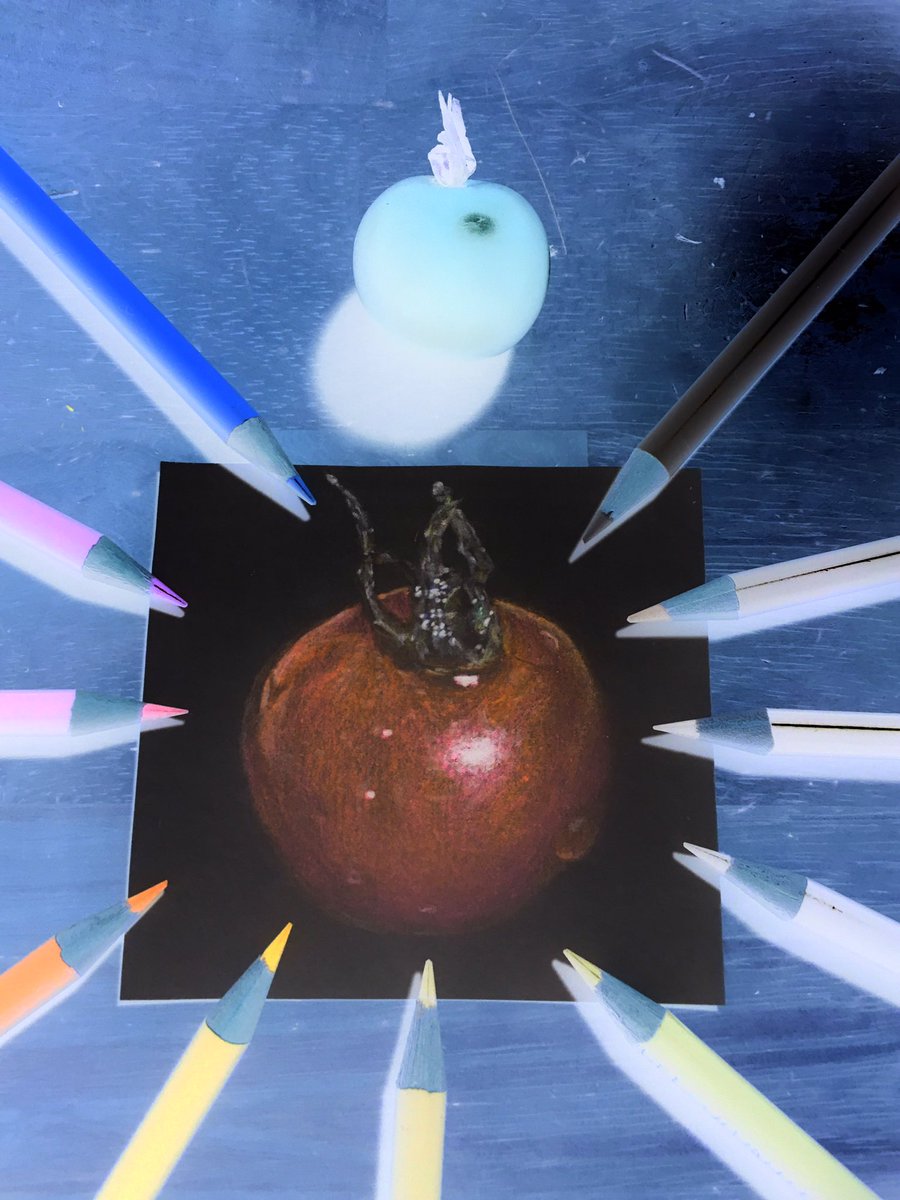おぇ… このトマトまずそうと思ったら… #トマト #野菜 #青 #赤 #色鉛筆 #アート #イラスト #絵描きさんと繋がりたい #イラスト好きさんと繋がりたい #冬の創作クラスタフォロー祭 #tomato #vegetables #blue #red #art #illustration #drawing #pencilart