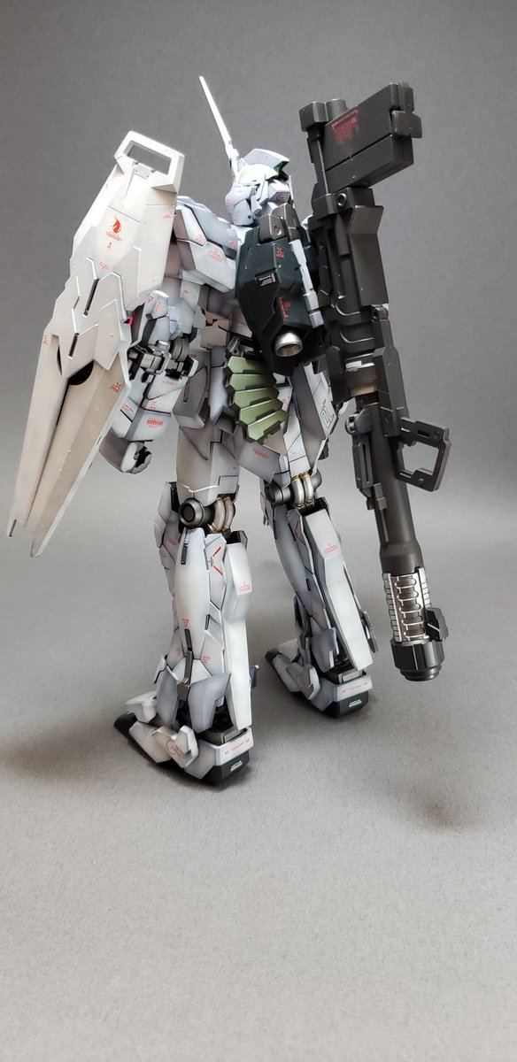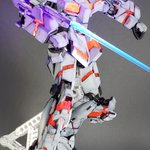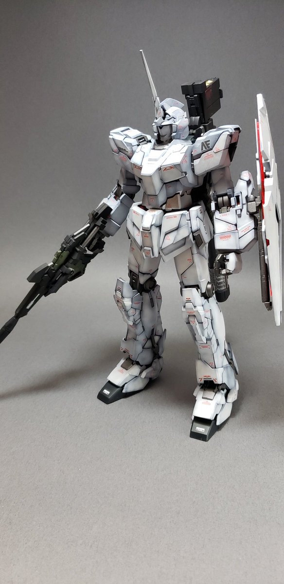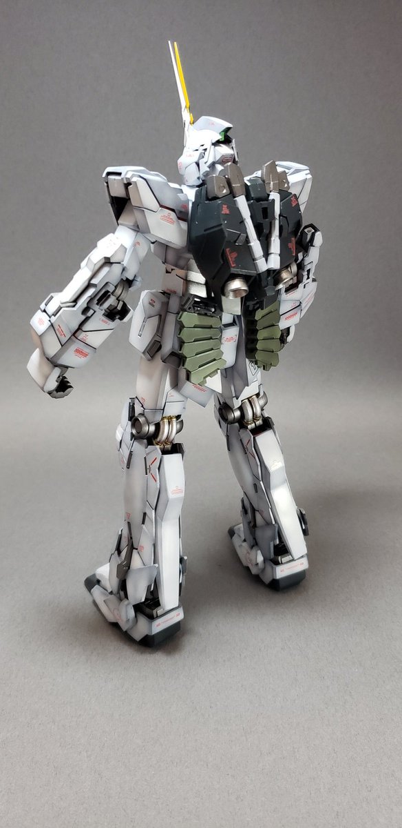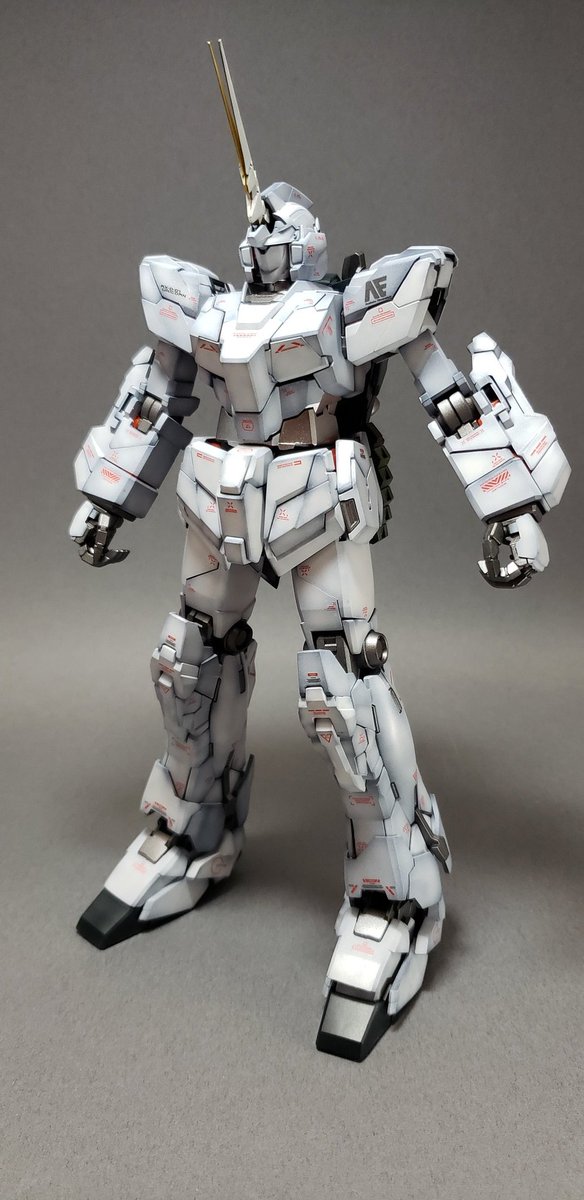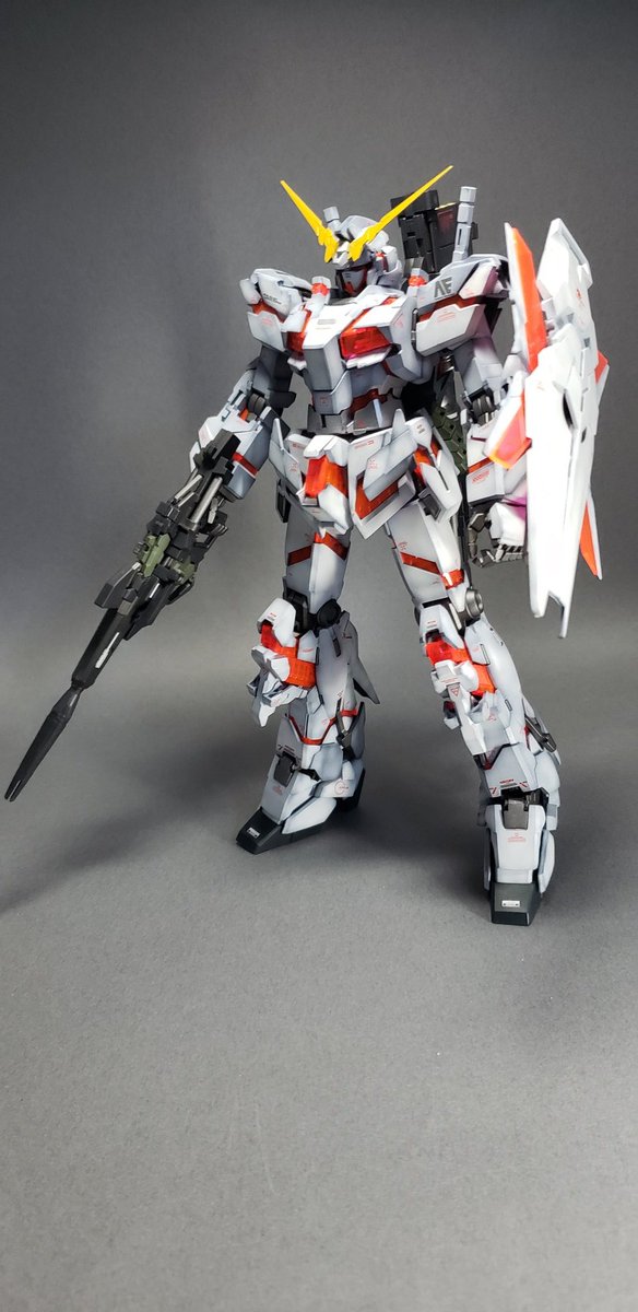 MGユニコーンとりあえず完成。 黒立ち上げからのグラデーション塗装。サイコフレームは光沢、他はつや消し仕上げ。特に改造もしてないですが目だけHアイズに置き換えました。#ガンプラ #ガンプラ好きと繋がりたい #ガンプラの画像貼るとRTされると聞いて #ガンプラ初心者 #プラモデル好きと繋がりたい