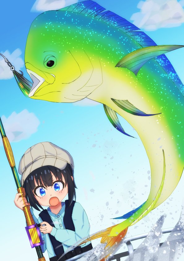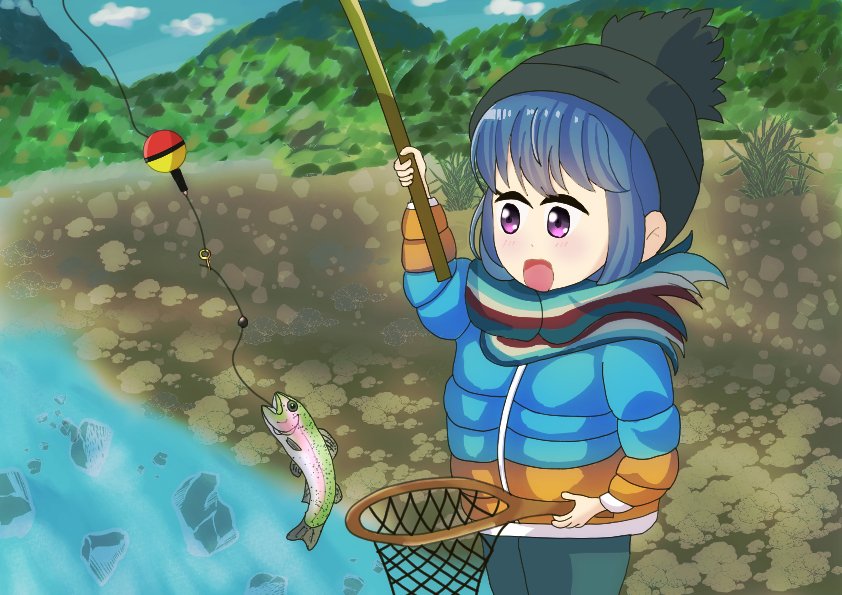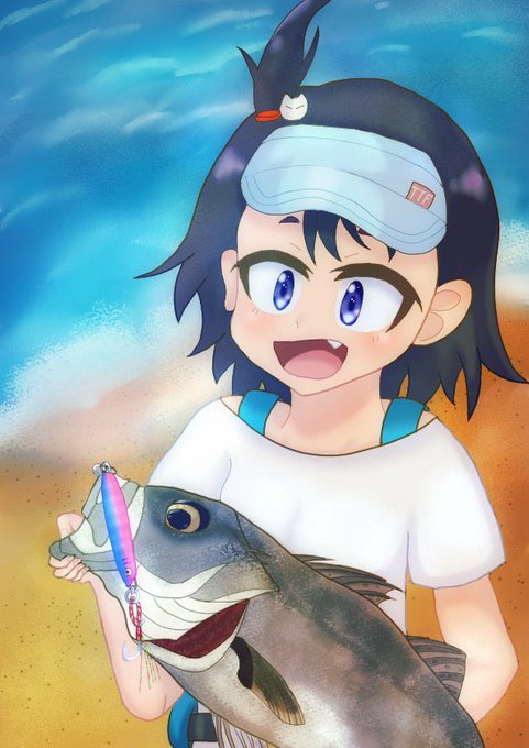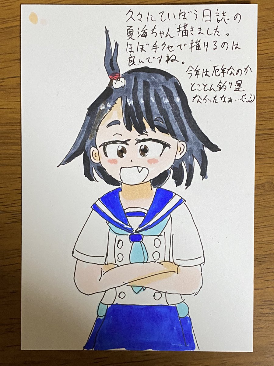 #100日チャレンジ #放課後ていぼう日誌 5日目は放課後ていぼう日誌から念願のシーバスを釣った夏海ちゃんを描きました。 夏海ちゃんはもちろん、普段釣っているシーバスや手持ちの百均ジグも参考にできるので上手く描けました😆