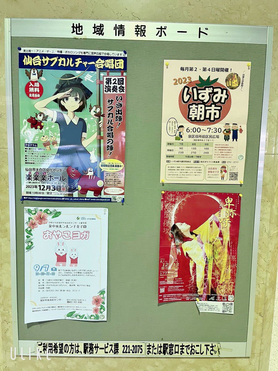 4 17 本日8/7〜8/20まで第一弾として、泉中央駅、地下鉄仙台駅、地下鉄長町駅の構内にて、描かせていただきました『仙台サブカルチャー合唱団様』のポスターが掲出されております🚃 写真は泉中央駅構内になりますが、改札前情報ボードに掲示いただいてますので、お近くの方は是非チェックしてみてください✏️ 23/08/07 17:44